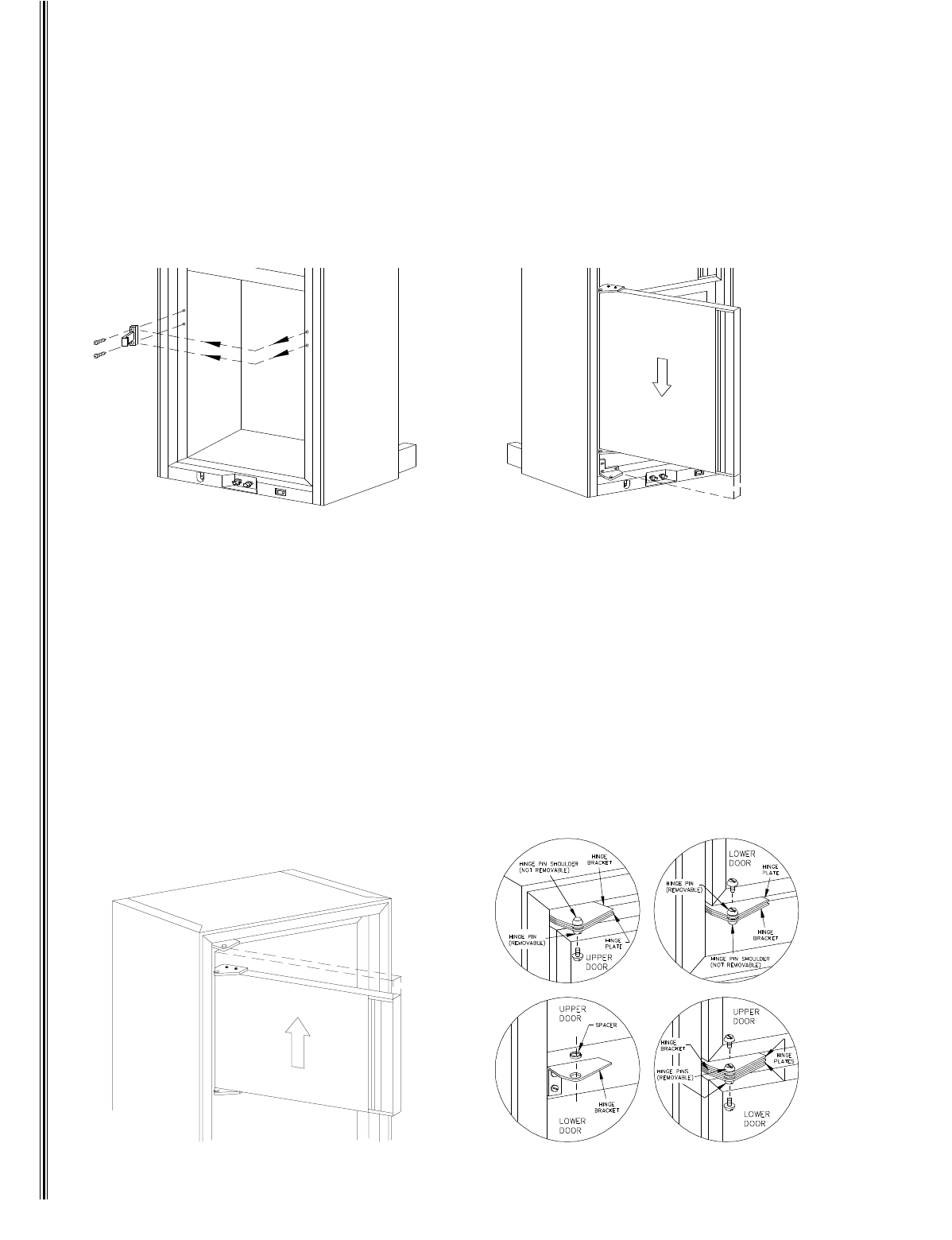 on the bottom hinge pin shoulder. Close door and align holes in top hinge brackets. The magnetic gasket will